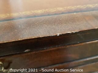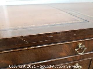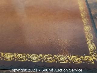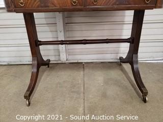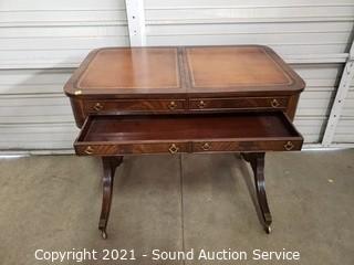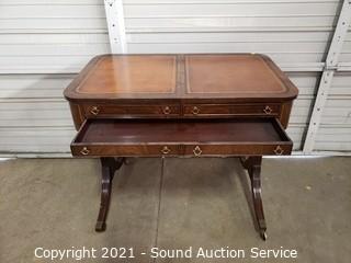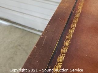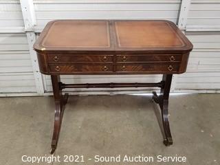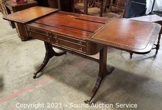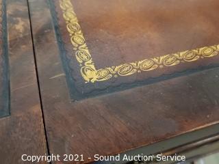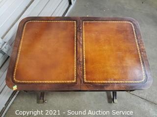 Lot #0011: Unique Antique Leather Sliding Top Table w/Drawer