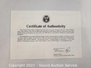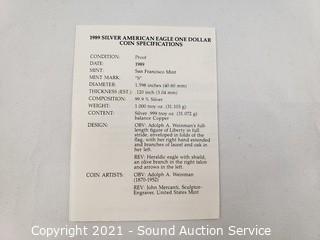 Lot #0068: 1989 90% Silver American Eagle 1 Troy Oz. Proof