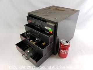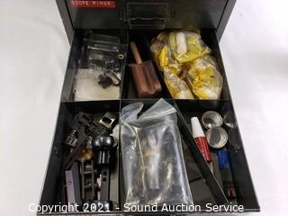 Lot #0393: 4 Drawer Steel Chest w/Misc. Firearm Pieces