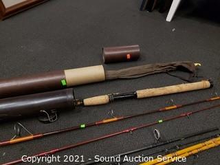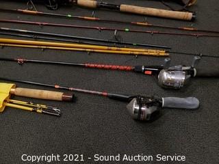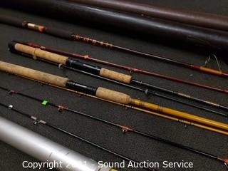 Lot #0427: 9 Fishing Rods, 2 with Reels & 3 Cases