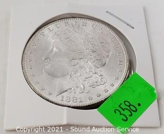 Lot #0358: 1881-S Unc. Morgan 90% Silver Dollar MS60