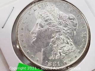 Lot #0368: 1881-S Unc. Morgan 90% Silver Dollar MS60