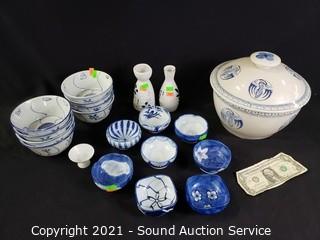 Lot #0287: 20pc Blue & White Pottery, China Table Ware