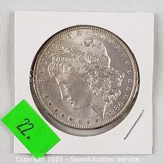 Lot #0022: 1884-O Unc. Morgan 90% Silver Dollar MS60