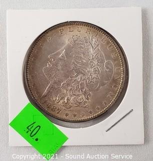 Lot #0040: 1887-P Unc. Morgan 90% Silver Dollar MS60