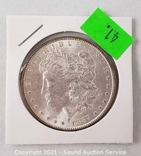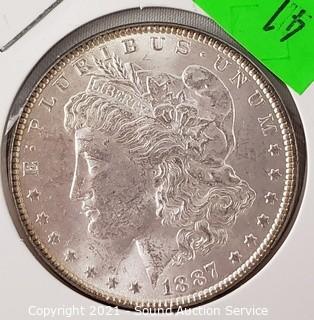 Lot #0041: 1887-P Unc. Morgan 90% Silver Dollar MS60