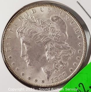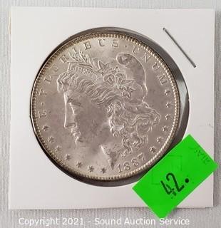 Lot #0042: 1887-P Unc. Morgan 90% Silver Dollar MS60