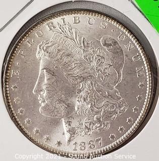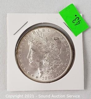 Lot #0043: 1887-P Unc. Morgan 90% Silver Dollar MS60
