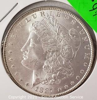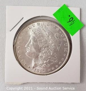 Lot #0046: 1887-P Unc. Morgan 90% Silver Dollar MS60