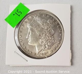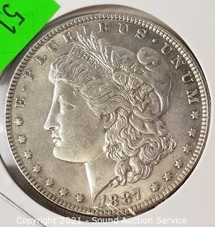 Lot #0051: 1887-P Unc. Morgan 90% Silver Dollar MS60