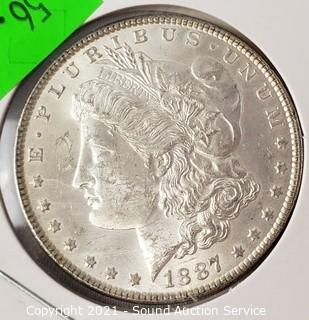 Lot #0056: 1887-P Unc. Morgan 90% Silver Dollar MS60