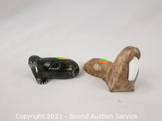 Lot #0257: 4 Carved Soapstone Alaskan & Russian Figures