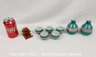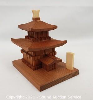 Lot #0409: 6pc Saki Set & Miniature Wood House
