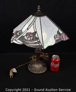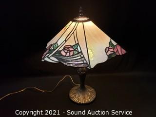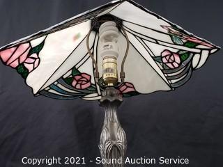 Lot #0252: Art Nouveau Leaded Stained Glass Table Lamp