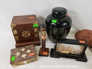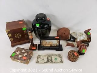 Lot Details: Pottery, stone, wood, porcelain & cork art.