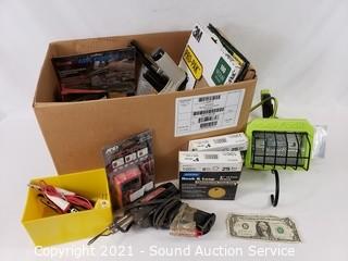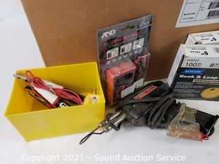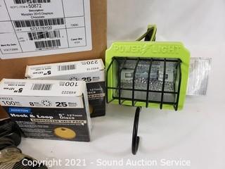 Lot Details: Work light, various sand paper, soldering iron, multi-meter & more.