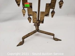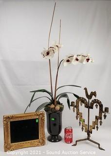 Lot #0406: Metal Candelabra, Faux Plant & Gold Frame