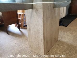 Lot #0344: Modern Travertine Base 65" Dia Glass Top Table