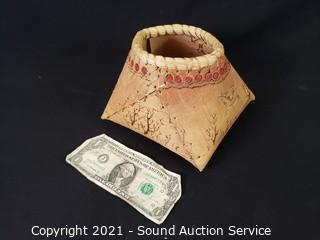 Lot #0234: Native Ojibwa Bireh Bark, Sweet Grass Berry Basket