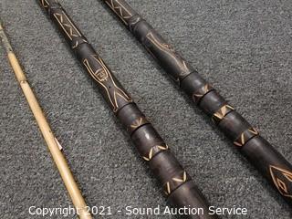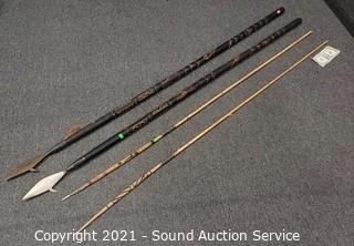 Lot #0294: Primitive Carved Wood & Bamboo Fishing Spears
