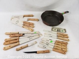 Lot #0326: 10.5" Iron Skillet & 20 Chef's Collection Cutlery
