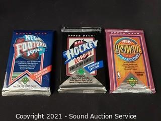 Lot #0111: 5 NBA Sealed Packs & (18) 1968 Topps NFL Cards