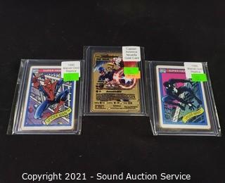 Lot #0102: 3 Marvel Super Hero Gold Replica Cards