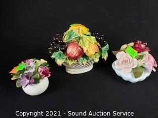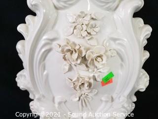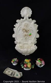 Lot #0352: 3pc Porcelain Floral Arrangement & Wall Pocket