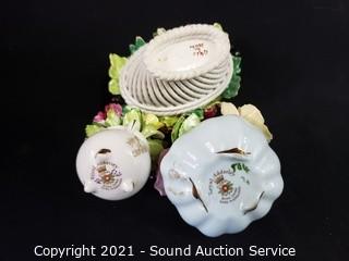 Lot Details: Wall pocket is pen sign Spain, 17" x 9". Italian Lattice arrangement & 2 Royal Adderley England. 2.5" to 3.5".