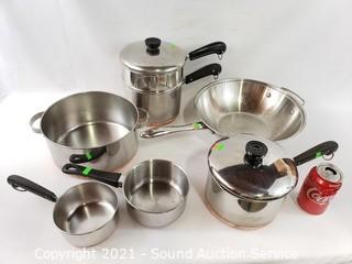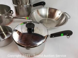 Lot Details: Revere Ware & Gourmet, 5" to 12" dia. Count includes lids.