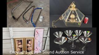 406 lots including; Vintage Emil J.Paidar Stylist Chair, Greek Statues, Maytag Washer & Dryer Upright Combo System, Recon Brush Master Commercial Grade Chipper, Adorable White Woven Rocking Chair, Bolts of Fabric, Nice Wood Bench, Apple iMac 27" All-in-One Personal Computer, Boreem Tia 6021 Electric Scooter - Works, Central Machinery 12-Speed Bench Drill Press, Delta Bench Band Saw, Antique Oak Armoire, Unique Patio Rocking Lounger w/Umbrella, Refrigerators & Freezers, Fire Sense Patio Propane Heater, Weber Genesis Black & Stainless Propane Grill, 13 Stackable Tan Patio Chairs, Nice Rattan Wove Padded Love Seat w/Ottoman, Camping/Beach Folding Sink Table, Vintage Radios, Assorted Antiques, Collectibles, Fine China, Records, Commercial Char-Broil Tru Infrared Propane Grill & So Much More!!!