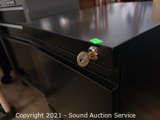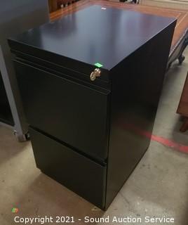 Lot #0280: Black Steel 2-Drawer Rolling Locking File Cabinet