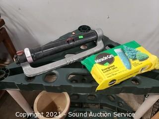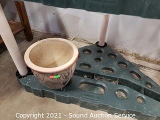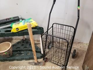 Lot #0281: Corner Tool Rack, Folding Cart, Fertilizer Spikes
