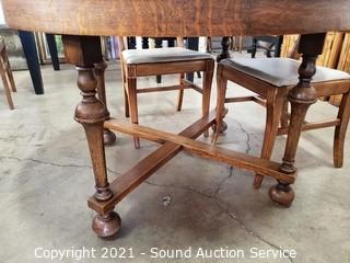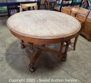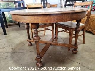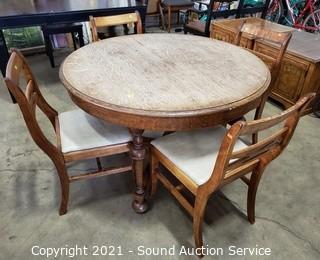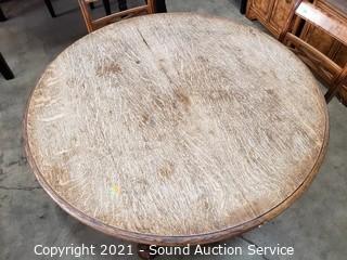 Lot #0018: Distressed Finish Round Dining Table w/4 Chairs