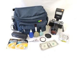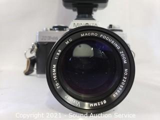 Lot #0221: Minolta XG-M Camera w/Lens, Flash & Accessories