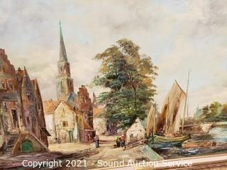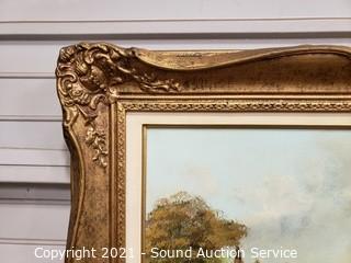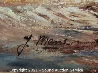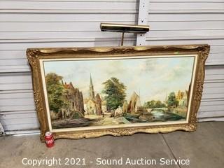 Lot #0380: Original J.Mens Gold Gilded Lighted Oil Painting