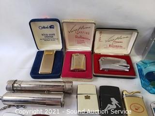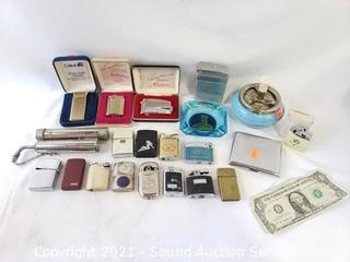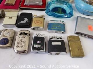 Lot #0219: Vtg. Lighters, Cigarette Cases & Ashtrays