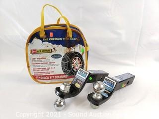 Lot #0121: (2) 2" Receiver Ball Mounts w/Balls & Tire Chains