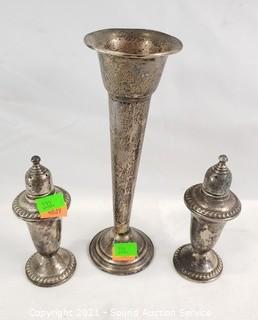 Lot #0333: 3pc Empire & Alvin Weighted Sterling S&P & Vase