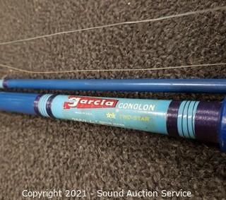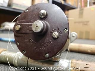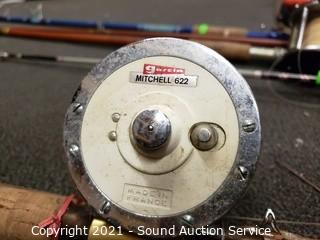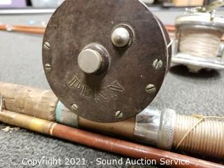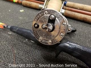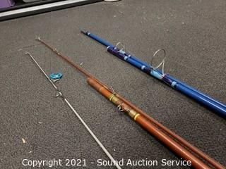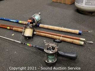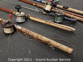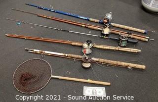 Lot #0085: 5 Vtg. Fishing Rods w/Reels & Landing Net