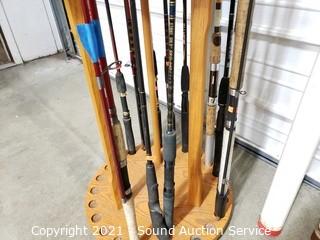 Lot #0079: Carousel Fishing Rod Rack Loaded w/Rods & Reels