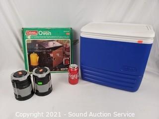 Lot #0281: Coleman Cooler, Camp Stove & LED Lanterns