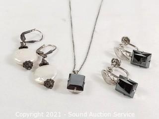 Lot #0313: Sterling & Hematite? Necklace & Earring Set