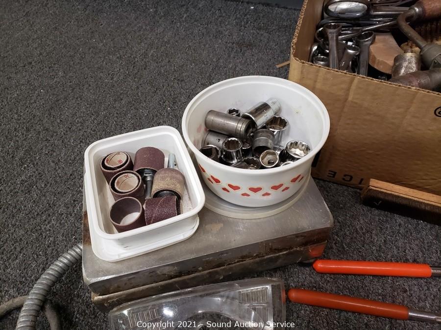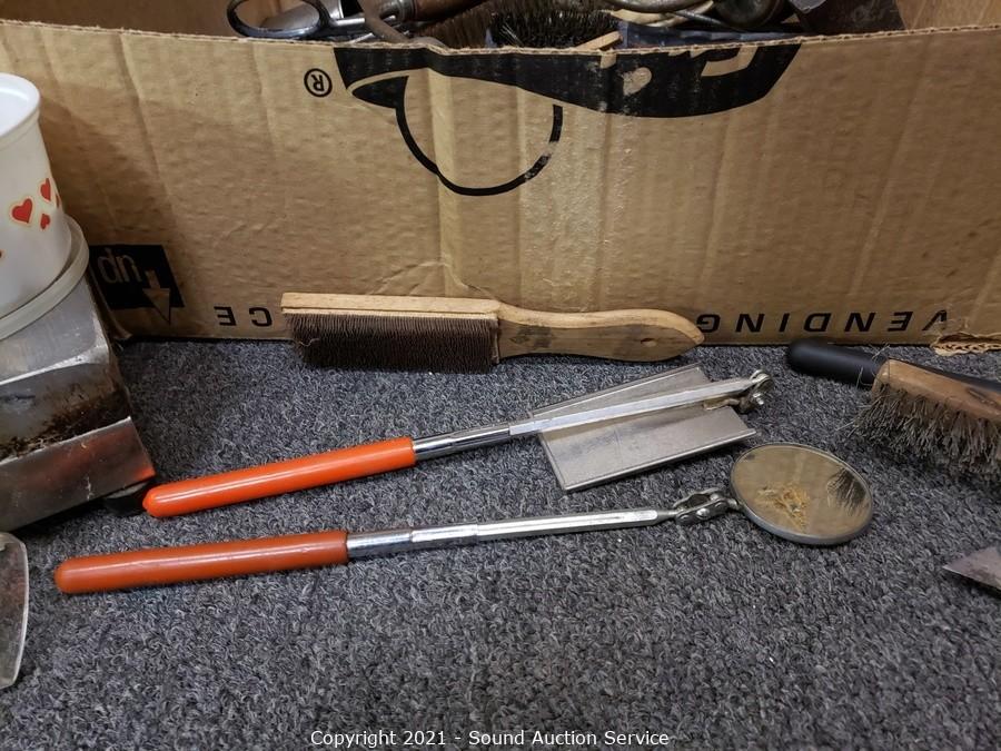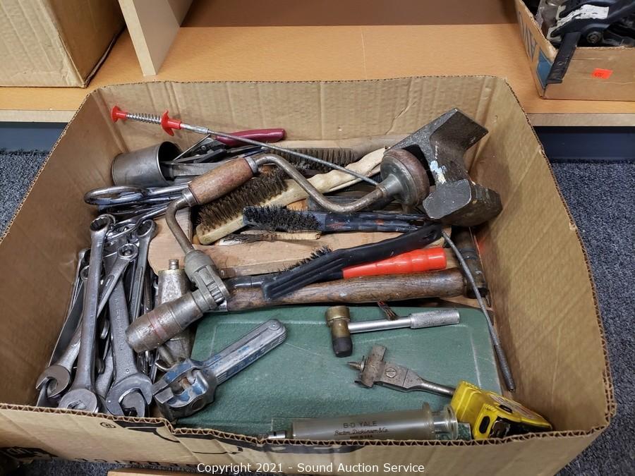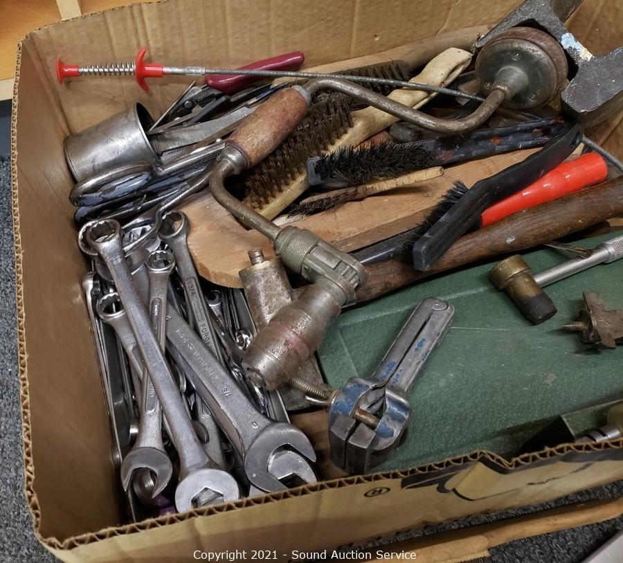 Lot Details: Wire brushes, wrenches, snips, ratchets & more.