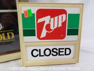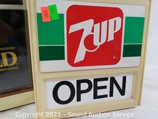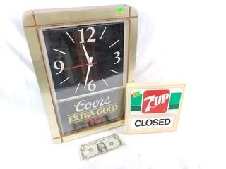 Lot #0165: 7-UP Open/Closed Sign & Coors Clock