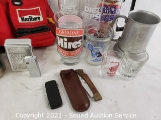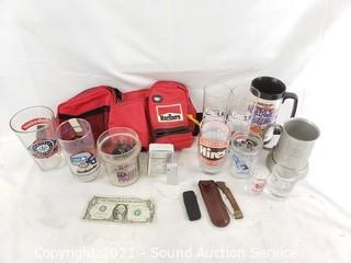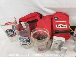 Lot #0259: Assorted Advertising Glasses & Marlboro Fanny Pack