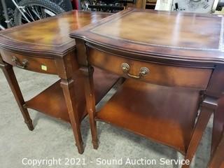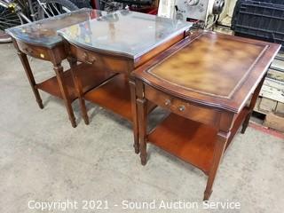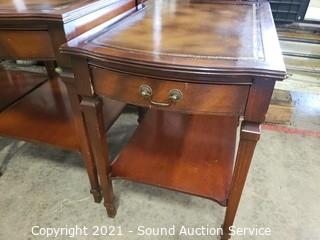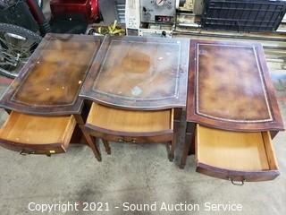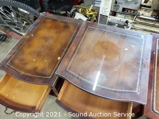 Lot #0251: Nice 3pc Leather Top Mahogany Table Set