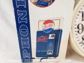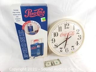 Lot #0243: Vtg. Coca-Cola Hanover Clock & Pepsi Telephone