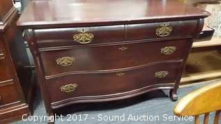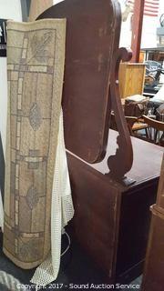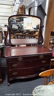 Lot #0058: Antique Dresser w/Lyre Swivel Mirror Topper