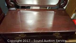 Skeleton key lock drawers. Approx. 32" tall, 47" wide and 24" deep with a 34" x 36" mirror.